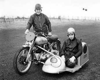 1948 Első versenye az apja oldalkocsijában (Vincent 1000)