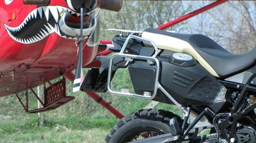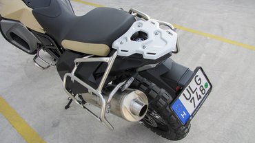 A formaterve, a kiegészítők dizájnja mind nagyon üt, pedig nem nagy a sima GS és az Adventure közti különbség. De az a kevés nagyon is sokat számít. A nagyobb, agresszív formájú plexi, a szélesebb szélterelő idom a hűtő előtt, a 24 literesre növelt benzintartály miatt kiszélesedő csípő, a dobozok és táskák rögzítésére szolgáló, ugyanakkor bukókeretként is funkcionáló tartórendszer, a szögletes, alumínium kartervédő, a motorblokkot védő bukócső, és az egészet megkoronázó durva bütykös terepgumik teljesen más karaktert hoznak ki ugyanabból az alapból. AzF800R-rel közeli rokonok ugyan, de a különbség nem pár idom és apróságok áttervezésébőll adódik - a 800R egy naked nike. A GS egy divatos túrabakancsot, kényelmes nadrágot, lélegző thermo anyagból varrt pulóvert viselő, profi hátizsákkal a hegyekbe induló túrázó, az Adventure, különösen így homokszínben, meg olyan, mint egy taktikai mellényt, sivatagi bakancsot, MOLLE hátizsákot és kaland kalapot (boonie hat) hordó, szúrós tekintetű harcos. Létezik az Adventure pirosban is, de szerintem az kiheréli a látványt, a matt homoksárga az igazi főnökség.