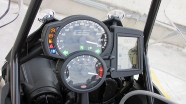 Az, hogy a visszapillantó tükrök házának formája inkább csinos, mint praktikus, harctéri körülmények közt elhanyagolható, de a zombi apokalipszis eljöveteléig eltelő időben érdemes egészen lehajtani a tükrök külső sarkát, mert elég hülye módon azt a részét csapták le a visszapillantóban, ahol a mögöttes forgalom legfontosabb, hozzánk közel eső része halad. Papp Tibi panaszkodott, hogy neki irtózatosan vibrált a tükör, amikor pályázott a GS-sel, én ilyesmit nem tapasztaltam, lehet, hogy a markolatvédő felszerelése szűntette meg a jelenséget. Fontos még kiemelni, hogy békeidőben óriási nagy jóság az automata index, ami 200 méter vagy tíz másodperc eltelte után magától kikapcsol. Ezt a funkciót egyre több motoron vezetik be újra (sok japán gépen már a nyolcvanas években megvolt, de aztán mindenki leszokott róla), ha rajtam múlna, kötelezővé tenném, rengeteg félreértést, balesetveszélyes helyzetet meg lehet vele előzni.