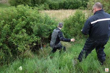Hogy mennyire nem volt tempó, azt az bizonyítja a legjobban, hogy a beígért felhőszakadás ellen felhúzott esőruhámon egyetlen szakadás nem esett, igazából csak koszos lett. De a Burgmanben volt annyi lendület, hogy bezuhanjon a két méter mélyen zöldellő csipkebokorba. És milyen jó, hogy ez a szúrós, de sűrű bokor ott volt. Pillanatokon belül megérkeztek ugyanis a yarisos srácok, akik először elmondták, hogy egyikük pont itt esett be százzal egy Balenóval a másik bokorba, és tök egyszerűen ki lehet jönni a völgyből, majd segítettek kirángatni a motort. Mondjuk Gergő nélkül ez sem ment volna könnyen, de ő őserőből megoldotta a dolgokat, pillanatok alatt urává vált a helyzetnek. Felvett minden védőfelszerelést, hogy ne karistolják szét a tüskék, majd eltűnt az ágak közt. Legközelebb már azt láttam, hogy két lökéssel helyére igazítja a már kiszabadított Burgman kormányszarvát (ezt Dani előtte megpróbálta, de csak a homlokán sikerült kidagasztania az ereket, a kormány nem mozdult), majd Dani a motoron ülve, hátulról Gergő és Lacus által támogatva, a méteres fűben kioffroadozott az aszfaltra.