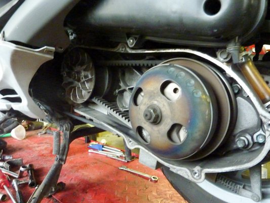 A motor erőlködik, majd nagy nehezen felküzdi magát egy magasabb fordulatszámra és kialakul valamiféle gyorsulás, míg végül eljut az ideális működési tartományba, vagyis a nyomatékcsúcs közelébe. Nagyon hasonló az is, amikor nem a görgők és a szíj használódnak el, hanem a kuplung kis, illetve nagyrugóiban csökken az ellenállás, ezért szintén túl korán engedi rá a terhelést a motorra. Ha a kisrugók eltörnek, vonszolja magát a robogó, mert mindig zárt állapotban van a hajtás. Bármely szerkezeti eleme is fárad el a szíjautomata váltónknak, a többire is érdemes ránézni, mert a akármelyik pontján szűnik is meg a kényes egyensúly, azonnal és jelentősen romlik a felhasználói élmény, és nő a fogyasztás.
