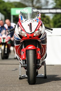 Ezután a motorblokkról mesélt –„Ma már nincs különbség a Senior és a Superbike kategóriás motorok között. Tény, hogy régebben több mindent engedélyeztek a Senior kategóriában, de csak a tradíció maradt meg, ugyanarról a motorról beszélünk. A North West 200 és a Tourist Trophy előtt két standard motorblokkot kaptunk a Hondától. Ezeket a csapat angliai főhadiszállásán tuningoltuk. A főtengely és a hajtókar gyári, ezeket nem módosíthatjuk, de a dugót, hengerfejet és a vezérműtengelyt igen. Régen még gyári versenyalkatrészeket is kaptunk, de az ezres motorok érkezésével megváltozott a helyzet. A hengerfejet a saját műhelyünkben, egy CNC gép segítségével készítjük el, míg a vezérműtengelyt megrendelésre gyártatjuk, figyelembe véve a követelményeinket. A versenykész motor fékpad szerint így kétszáztizenöt lóerő.