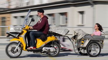 Hónapokkal ezelőtt merült fel, hogy van egy ilyen ex-postás Piaggio Liberty. Mondták, hogy vicces, mert van hozzá tálca meg utánfutó, és sárga - persze, tőlünk nyugatabbra számos országban ez a jellemző szín - de nem mozgatott igazán. Aztán mégis nálam kötött ki, hisz mostanában én járok ötvenessel a szerkesztőségben.