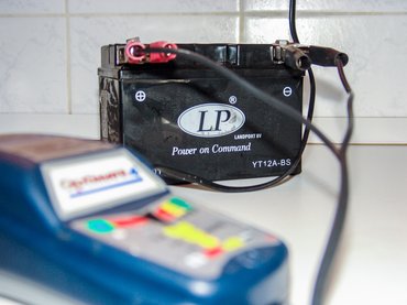 A nyílt cellájú akkumulátorokat érdemes kiszerelni a töltéshez, a következő lépés pedig a cellákat lezáró kupakok eltávolítása. Utána csatlakoztatjuk a töltőt a megfelelő pólushoz, majd a töltés befejezése után újra ellenőrizzük a folyadékszintet, visszazárjuk a cellákat – a motoros szezon kezdetéig ezt elég havonta elvégezni, sőt, ha csepptöltőnk van, egész télen rajta tarthatjuk.