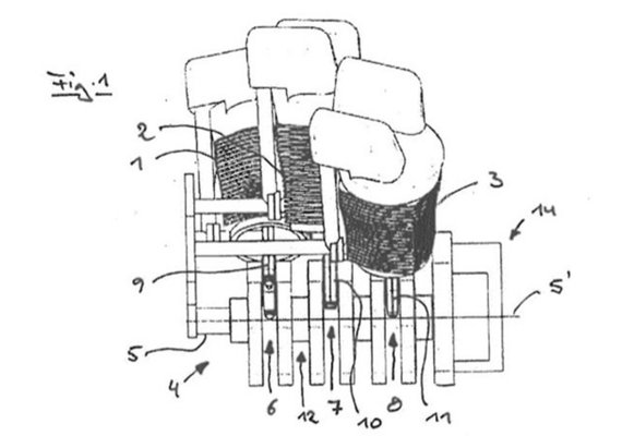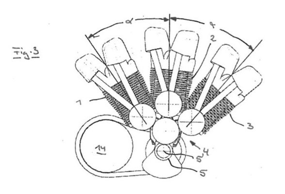 A két szabadalmaztatott blokk között a fő különbség, hogy az egyiknél mindegyik hajtókar külön csapon kapcsolódik a főtengelyhez, míg a másiknál két henger azonos csapra kerül.
