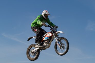 A teszt idejére már három versenyen túl voltak, és tapasztalatok alapján nem reménytelen az ügy. Eleinte úgy gondolták, hogy pont a rajtnál fog ellépni, hiszen neki nem kell az indítással vesződni. Ez csalódás volt. Nem a Freeride-ban, hanem a mezőnyben, ugyanis a modern endurók szinte azonnal életre kelnek, így mindössze 1-2 métert tudott kiugrani, amit aztán a nagyobb teljesítményű belső égésűek hamar bedarálták – főleg úgy, hogy a kétórás futam alatt nem kellett négyszer kiállniuk akksit cserélni. Viszont az élmezőnyben lehet vele maradni, sőt, kanyarban meglepően gyors tud lenni, a kezesség ott kamatozik, de a kigyorsításnál már nincs meg a kellő erő. Az extrém akadályokon cserébe megint nagy király az E-XC.
