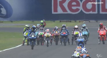 A videón jól látszik, hogy az ötös rajtszámú Fenati először belerúg a harmincegyes számot viselő versenyzőtársába, aztán megüti, majd leírhatatlan féregséghez folyamodik: az indulás előtt sunyin átnyúl a Ajo kormányára, és a vészleállítóval lekapcsolja annak motorját.
