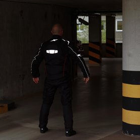 A fekete motorosruha több szempontból hülyeség. Egyrészt sötétben nem látszik, de világosban sem valami feltűnő, márpedig egy motoros szemszögéből nézve hasznos, ha nem olvad egybe a környezetével. Aztán jó időben, napsütésben, amikor a motorosok jellemzően motorozni szoktak, a fekete ruhában ezerszer hamarabb fő meg az ember, mint egy világosabb színűben. Az első problémán javítanak a kabát dizájnjának részét képező nagy fényvisszaverő grafikai elemek és csíkok, ezek a 3 Layer nadrágon is megtalálhatóak, az Ace-air nadrágon ilyesmi nincs. A dögmeleg ellen elég jól működik, hogy a nadrág és a kabát is hálós, a belső rétegek eltávolítása után elég jól szellőznek.