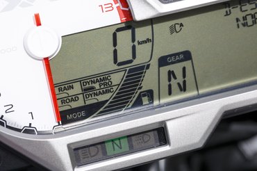 A feláras elektronikai csomagban – a tesztmotorban ilyen volt – már van Dynamic és Dynamic Pro üzem is, az előbbi pont annyival teszi hevesebbé az XR-t, amennyit a Rain levesz, a teljesítménye nem változik, csupán minden vadabbul történik. A Dynamic Pro előhívásához egy dugót kell csatlakoztatni a motorhoz, és olyankor már csak nagyon kevés kontrollt hagy a vezető felett, ez lényegében versenypálya-üzem, amikor igen komoly kipörgést enged a rendszer a hátsó keréknek, sokkal többet, mint a bolondbiztos Dynamicban. Ezt nem is adták a kezünkbe, mondván, közúton erre semmi szükség.