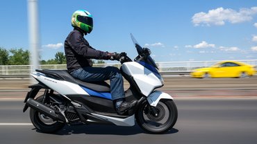 A 125 köbcentis robogó általában képes elég jól ellépni a lámpától, de egy izmos turbódízel-automata váltó kombinációval már nem boldogul a 14 ló. Maga a gyorsulás nem eget rengető, elvégre a Forza 162 kiló, a könnyebb 125-ösök robbanékonyabbak. A CVT-váltóval azonban olyan hosszan marad egyenletes a gyorsítás, hogy az átlagautó abban a pillanatban lemorzsolódik, amikor kikuplungol a ketteshez. A könnyed gyorsulás egészen kilencvenig megmarad, aztán már a lomhulunk. Hogy mennyivel tudjuk 100 fölé lendíteni, az már a motoros légellenállásától függ.