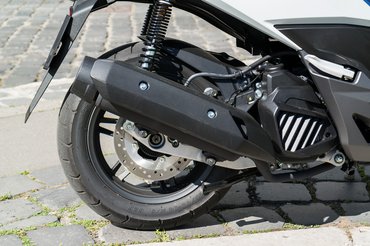 Visszatérve a Forzához, a tömegéhez és a méretéhez képest egész keveset kajál: nálam 2,8 lett az átlag, sok dugózással és nyelezéssel, viszont ha egyenletesen halad a forgalom, még ennél is kevesebbet ehet. Megnéztem, állandó hetvennel 1,8-1,9 környékén eszik, ha pedig ötvennel megy, másfél liter környéki számokat mutat a fedélzeti számítógép, ami szintén szériatartozék. A 125-ös blokkhoz a PCX-éhez hasonlóan stop-start rendszer is van; ez egy-két másodperc gondolkodás után leállítja a motort, ha megállunk, gázadásra viszont azonnal beröffenti. Nem rossz, de aki nem szereti, kikapcsolhatja.