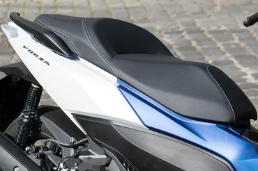 Nem baj, nekik ott a nemzetközi nőnap, később meg az anyák napja, én meg örülök, hogy vannak férfiasabb robogók is. Azt a pár pillanatot, amig a lámpánál ácsorog az ember, kibírom fél talppal is, a forgalomban meg szerintem sokkal jobb, hogy ellátok messzire, szemben mondjuk a kanapébb jellegű robogókkal, mint amilyen a kis Suzuki Burgman. A Forza ülése 78 centire van a talajtól (üresen), amiből ugyan lejön annyi, amennyit a rugózás összeül az ember alatt, de például a Suzuki esetében 73 centiről indulunk, és ez nagyon nem mindegy.