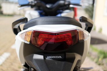 A Honda lényegében ugyanaz a koncepció: már nem teljesen kiskerekű, de nem is nagykerekű robesz, hanem valahol a kettő között félúton: elöl 15, hátul 14 colos a kereke. Mi értelme ennek? Tárolóhely van, nem is kevés, márpedig a városi robogó egyik értelme az, hogy egy kisebb garzonlakást megtöltő cucc belefér, kellőképpen ügyes és irányítható, de nem esik neki annyira rosszul a csapnivaló útminőség, mint az egészen pici kerekűeknek.