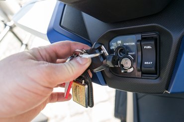 Sajnos azt nem vettem észre, amit utólag olvastam a Forza leírásában: a plexije állítható, puszta kézzel, méghozzá vagy 12 centit. Városban, pláne ha meleg van, nem szeretem, ha magas a szélvédő, mert pont a sisak van a turbulencia kellős közepén, ezért zajosabb. Ha lett volna bármi látható jele az állítási lehetőségnek, biztos lejjebb tettem volna. A Forza motorja amúgy teljesen csendes.