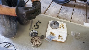 Már az idomok lebontásánál feltűnt, hogy minden mennyire simán szétjön, az ütött-kopott külső ellenére mennyire rendben van a filléres konténerszökevényünk, amit a Red Baron telepéről hoztuk el. Ezek a robogók alapvetően nem megvásárolhatók, az üzletben a szervizelt, ellenőrzött nagymotoroké a főszerep, ezeket kereskedőknek adják tovább árverés útján (ha valaki rákívánna a témára, keresse bizalommal őket). Ennek volt gazdája, hiszen alapállapotában is teljesen használhatónak bizonyult, a hajtásban pedig minden elem kifogástalan volt. Nem hogy elhasználódás, de használat jelei sem nagyon látszódtak a szíjon és a görgőkön. Ennek ellenére mi hozzányúltunk.