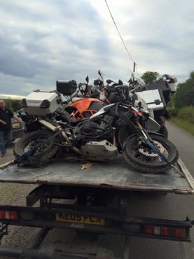 Bár a motorkerékpárok három hét alatt megérkeztek, amikor azonban átvették őket, a tulajdonosok nem hittek a szemüknek. A motorok rosszul voltak rögzítve, és egyszerűen egymásra dőltek. Pedig nem filléres kétkerekűekről van szó. Egyikük például végül hét helyen észlelt festékleverődést és kisebb-nagyobb karcolásokat BMW S 1000 RR-jén. Emellett pedig KTM 1190 Adventure és BMW R 1200 GS is volt a tréleren.