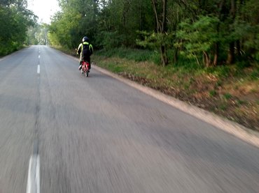 Mivel a Peugeot-nak sík úton 45, lejtőn 50, emelkedőn 30 km/h volt a vége, míg a Berzerker azért kényelmesen tartja a 60-65-öt domborzattól függetlenül, folyamatosan figyelgettem hátra, hogy mikor tűnik el Ágoston a gyengélkedő gyújtású mopedjével. Végül nem is volt gond, azt leszámítva, hogy a hazafelé út elején kiürült a tankja - szerencsére öt percre volt egy benzinkút, tehát a gond igazából nem is volt gond.