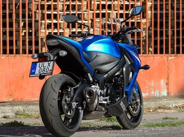 Szenzációs lett. Meg jó hangos. Átüt rajta a klasszikus gépészet mennydörgése, és még a széria csutkadobbal is begyűjthetünk egy-két rosszalló nézést a babakocsis anyukáktól. Ez is, ha úgy tetszik, dörgölőzés az oldszkúl motoros felé, meg az is, ahogy az ezres blokk előadja magát. Egyből alapjárattól bikának érezni, nem habog, nem bizonytalanodik, csak fújtatva húz. Középtájt, és ezt a négyezer fölötti tartományra kell érteni, igazán dühbe jön, itt érdemes használni, amíg nem őrülünk meg teljesen. De erre az esetre is van megfelelő válasza a GSX-S-nek, mert szelídítés ide, 145 ló oda, nyolcezer fölött olyan eksztatikus rohamba lehet belehajszolni, amit a megcélzott korosztály, de még én is szívesen meghagyok a fiatalabb huszároknak.