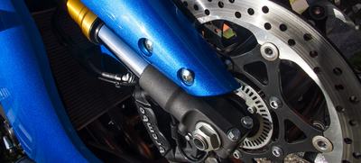 A futómű is sportmotorhoz illően igényes, az első fejre állított KYB-ket még tekergetni is lehet, hátul pedig szoborszerű, érdemtelenül feketére festett öntött villa teszi a dolgát. Bárki is használta előttem, nem éreztem szükségét, hogy elállítsam, a csillapítás nagyon el lett találva. Nem csoda, hogy így voltam vele, a Suzuki még az idom által létrehozott, kétszáznál keletkező húsz kiló leszorítóerő miatt is úgy gondolta, igazítani kell az első teleszkópokon, vagyis tényleg aprólékos hangolási munkát végeztek.