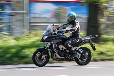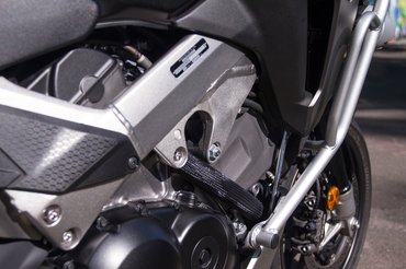 A hagyományos teleszkópvilla megmaradt, de az aljára már radiálisan rögzített Tokico féknyereg került, a blokkot pedig addig búbolták, míg nem találtak további négy lóerőt és 2,2 Nm-t. Szépek a ledes indexek, jó a légies csőr, ami ráadásul a Crossrunnernél nem a suzukis iskolát követi, vagyis nem szimplán dizájnelem, hanem BMW-s stílusban funkciót lát el, levegőt vezet az olajhűtőre.