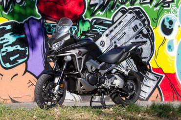 Laza talajon eleve hazárdjáték közel két és fél mázsával hülyéskedni, sokkal érdekesebb, hogy ez az irgalmatlan tömeg csak akkor érződik, ha tologatjuk a motort, menet közben az ólomnehéz Crosstourerhez hasonlóan elég ügyesen le tudja tagadni a súlyát, egyedül a már paráztató mértékű vészfékezéseknél érezni, hogy a vártnál nagyobb tömeggel kell megbirkózniuk 310 milliméteres tárcsáknak. Nagyon büszke is vagyok magamra, hogy ilyen rafináltan sikerült szóba hoznom az ezerkettes batárt, aminél minden szempontból ésszerűbb a 800-as. Egyrészt jobban néz ki, másrészt csak pont annyival megy rosszabbul, amennyivel könnyebb és kezesebb. Ráadásul ezzel nem olyan könnyű megitatni 12-13 litert, a teszt végére az átlag 5,8-ra jött ki, de hajtós üzemben is elvan 6,5-ből, ha nem a végsebességet keressük Sopronig.