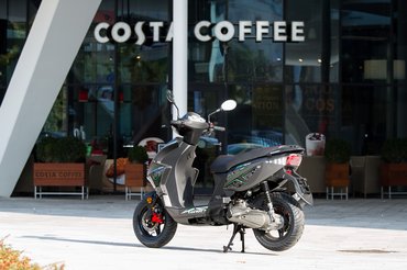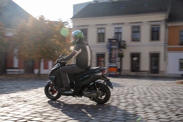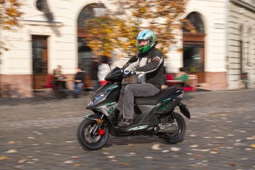 Oké, nem a késő őszi csípős reggelekhez hangolták a karburátort, de attól még egy CVT-s robogó nekem ne böffenjen le, mikor a koránkeléstől ingerült autósok torlódnak a hátam mögött. Aztán le is szoktam a furakodásról, elég volt, ha a második-harmadik sorból rajtoltam – nem azért mert többször lefulladt, hanem az öt lóerős blokknak bizony nagy ez a kasztni: indulásnál először csak szenved, amíg el nem éri a 8-10 km/h-s sebességet, és csak utána kapja el a lendületet. Afölött sem repeszti meg a májat a gyorsulás, de legalább nem akarok leszállni, hogy egy kis tolással besegítsek.