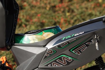 A 2015-ös F-Act Evo az előző évi kiadáshoz képest színében új csak – a matt szürke-zöld-fehér kombináció kellően bátor választás, és ki is adja. A lentre szerelt lámpák nem rosszak, ahogyan a kissé össze-vissza élek sem kimondotta rondák, az idomba simított ledes indexek pedig kimondottan jól néznek ki – hanyatt nem estem tőle, ez inkább olyan átlagosan fogyasztható külső, közel sincs rajta annyi jó részlet, mint a Benelli 49X-en. Ami egyébként rokon, megegyezik például a variátor, a gyújtótrafó, a kerekek és a kipufogórendszer vége.