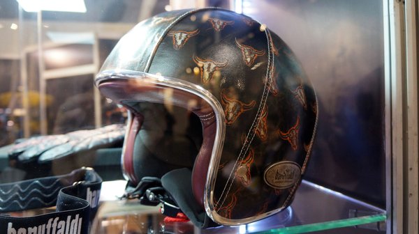 Találni rendes sisakot is a Baruffaldinál, úgy értem olyat, ami megfelel az elvárt minimumnak. Ezek jellemzően vintage jellegű nyitott darabok, a kidolgozásuk viszont elég extra, 73 ezerről indulnak a szimpla változatok, százért mennek a szépen bőrözöttek, ezért a látványos koponyás darabért pedig 132 rugót kéne virítani.