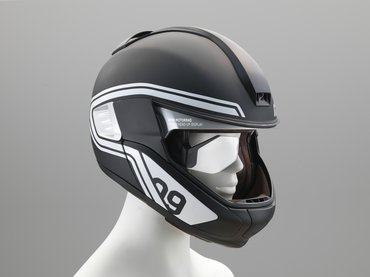 A bukósisakba két kamerát építettek, ebből az előre néző lényegében egy akciókamera, a hátsó pedig egy digitális visszapillantó tükör. A hangszórókkal is szerelt sisakot a motor bal oldali kormányára szerelt egyésggel lehet vezérelni, így menet közben könnyen kezelhető és beállítható. A sisakba beépített motyókat két cserélhető akkumulátor hajtja meg, amik egyszerre öt órán keresztül képesek ellátni az eszközöket.