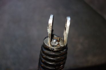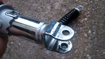 Elpucoltam hát az egész menetet, szárat, mindent, fogtam a Loctite menetrögzítót, megkentem, benyúltam hegyes fogóval a rugó menetei közé, megszorítottam a krómozott szárat (sose tegyenek ilyet), és amennyire tudtam, meghúztam. Hogy miért nem hegesztettem össze? Télire elástam minden mögé a hegesztőgépet... Én hülye.