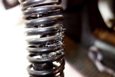 De azért nem felhőtlen minden. Az egyik bontott rugóstag még szeptember elején szétesett, lejött a teleszkópszár végéről az anya, a szár ekkor felcsúszott, a rugó pedig, megvezetését elvesztve, szépen bekonyult a terhelés alatt.