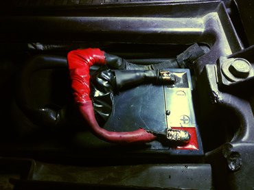 Utálom a pénzkidobást, ezért amikor az a Yuasa zselés riasztóakku bedöglött, amivel vettem, nem váltottam motorakksira, hanem vettem egy másik ugyanolyat. Olcsóbb, még az elavult, savas motorakkunál is, jobban bírja a rázást, sose ereszt, tartós mint a dög, nem is értem, miért kerül többe a béna, tönkremenős fajta. Vastagabb vezetékkel, kicsit masszívabb csúszósaruval megpatkoltam a hozzá vezető kábelt, de azért nem áltattam magam: soha, senki nem gondolta, hogy ilyesfajta gyengeáramú érintkezőkön nagy indítóáramokat lehet majd átvinni.