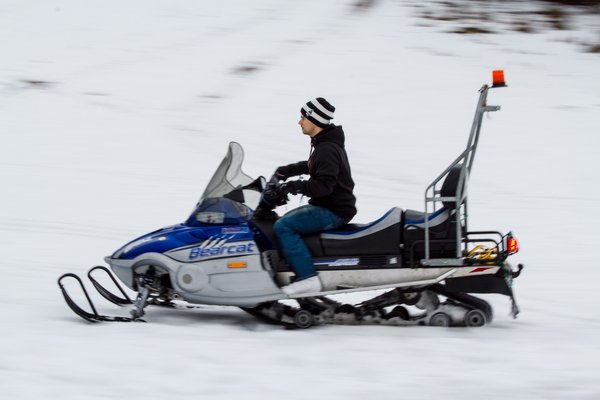 Indulás előtt érdemes még pár apróságot fejben tartani: az irányíthatósághoz kell a tempó, hogy az első sítalpak élen tudjunk fordulni, valamint meredek lejtőn és emelkedőn meg se próbáljunk nagyot kanyarodni. Illetve lefelé felesleges a féket markolni - olyankor ugyanis a gumitalp simán blokkol, és a szán kontroll nélkül megy tovább előre. Cserébe a motorfék alapból bőven elég, csak el kell venni kicsit a gázt.