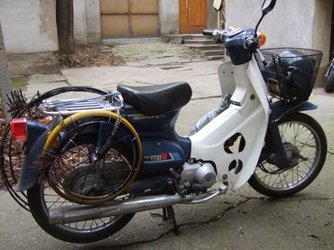 A motor amúgy lassú, a fékek gyengék, az ülés mozog, csúszkál, meg az egész túl kicsi. Japán belpiacos az enyém, és már gyenge is harmincévnyi hajtás után. De ezt 1957-ben tervezték, városi robogónak, lépésben araszoló forgalomba. Arra tökéletes.