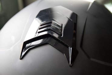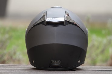 A doboz sem hazudik egetverően, a kompakt aerodinamikus formából a kompakt például igaz, a felnyitható sisakok, pláne ha beépített napszemüveggel terheltek, általában nagyobbak és nehezebbek, mint az azonos fejre való zártak, ez viszont pont akkora, mint a saját zárt bukóm.
