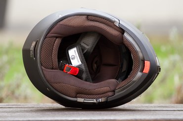 A gondok a bebújásnál kezdődnek, első alkalommal például rendesen orrnyergen is kúrtam magam a csak látszólag puha állrésszel. És ez még a kellemesebb élmény volt, a bélés klasszikusan a norvég halászoknak és vadnyugati csavargóknak a bőréhez tervezett anyag. A kellemes textil a közepesnél drágább sisakokhoz jár csak, ez pedig az aljának a legalja, hülye is az, aki az enyhén kellemetlen, smirglis hatásúnál jobbat vár. Cserébe kivehető és mosható, én valószínűleg kapásból ezzel kezdeném, hátha úgy sikerül megszabadulni a kínai műanyagok átható szagától.