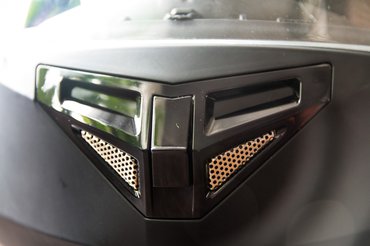 Az olcsó cuccokat vásárlók rémálma, hogy messziről kiszúrható a spórolás. Aki az ajándékba vitt alsó polcos borról is leáztatja a címkét, most megnyugodhat: ezen semmilyen branding nincs. Ettől automatikusan elegáns lesz, hiszen ez amúgy az igazán drága cuccok sajátja. További bizalomnövelő tényező, hogy jól néz ki. A héj matt fekete bevonata és a szellőzők fényes háza látványos kombináció, a bélés pedig nem fekete vagy szürke, hanem selymes fényű sötétbarna.
