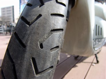 Gumik: az abroncsoknak három olyan tulajdonsága van, amit figyelemmel kell kísérni. Az első a guminyomás, ami típustól függően 1,8-2 bar között a megfelelő, és bármelyik benzinkúton beállítható - nem lesz hajszálpontos, mert a nyomásmérő órák túlnyomó többsége pontatlan, de annyit pont tudnak, amit az átlagos használat megkövetel. A másik a minta mélysége, amit a szabályozás minimálisan 1,6 mm-ben határoz meg. Ez szintén egzakt módon ellenőrizhető, a gumi közepén kell mérni, robogóknál jellemzően ott fogy el. A harmadik szempont már kevésbé mérhető, ez pedig az gumi elöregedése. A gyártási évet a DOT számból olvashatjuk ki, a négyjegyű szám második két jegye a gyártási évet, az első kettő a gyártás hetét jelzi, tehát ha DOT 2911 van a gumira írva, akkor azt a 2011-es év 29. hetében, azaz júliusban gyártották. Ezeket 5-6 évesen már lehet öregnek nevezni.