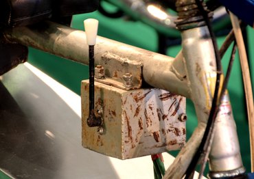 A villanyak, a venyige fékkarok, a kemping bicikliről származó kormány, a szinte csak nyugati exportra gyártott banánüléses gyerekbringáról leműtött, egymás mellé csavarozott nyergek. Mind mind félmegoldás, hitvány cucc. Azt a vázra taknyolt kapcsolódobozt is érdemes egy pár percig néma áhítattal nézegetni. Csoda, hogy sosem lett belőle sorozatgyártás?
