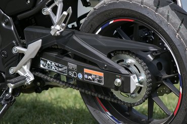 Minden más épp annyira jó, hogy ne álljon az élvezetes motorozás útjába. A kéthengeres, 471 köbcentis motor pont annyit tud, mint korábban – valószínűleg nemigen nyúltak hozzá. A csúcsteljesítménye 48 lóerő 8500-as fordulatszámon, ami nem sok, de úgy háromezertől szép egyenletesen húz, a gázra közvetlenül reagál, kéthengereshez képest sima járású, csak magas fordulaton kezd csuklózsibbasztó rezonanciákat kelteni, és a középtartományig kifejezetten csendes az új, rövidebb és szögletesebb gyári dobbal. Nagy tűzijátékot ne várjon senki, de az erő hiánya csak 130 km/h körül kezd érezhetővé válni, addig kifejezetten jó partner a játékban. Emellett kifejezetten takarékos is: a gyári adat 3,39 liter száz kilométerre, nálunk változatos kínzások közepette 3,8 litert fogyasztott, ami még mindig igazán baráti.