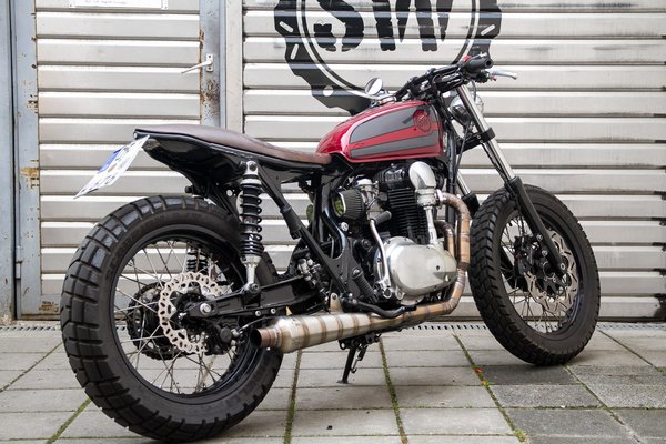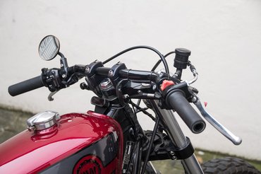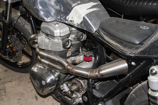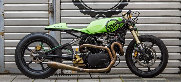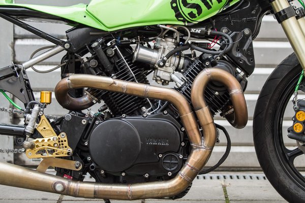 „Egyszer építettem egy XV750-et, mert tetszett a blokk formája meg a futómű, szóval eszembe jutott, hogy kéne valami erősebb, mert a 750-es csak ötven ló, és hozzá még dög nehéz is a kardán miatt. Szóval kellett valami, ami hasonlóan néz ki, de megy is. A TR1 meg láncos, ezer köbcenti, gyárilag majdnem 70 ló, és ha ráraksz 70-es Dellortókat, akkor már majdnem nyolcvan” – magyarázta a motor történetét, majd elengedett egy sejtelmes mosolyt – „ez sokkal több lesz”.