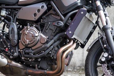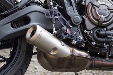 A mart fékkarok jólesően simulnak a tenyérbe, ráadásul menet közben, fél kézzel is állíthatóak. Szintén sokra tartom a CNC-vel készült versenylábtartókat – utcai motornál ugyan nem indokoltak, de szeretem az ilyesmit. Ezek lényege, hogy személyre szabhatjuk velük az üléspozíciót, nem érnek le kanyarban, és ha esünk, nem hajlanak fel, így nem szorul a láb a motor alá. Az XSR-en ezek inkább pszichésen számítanak, hozzátesznek az élményhez, mint autóban egy jó fogású sportkormány.