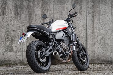 Cserélték a hátsó gátlót is, sajnos olyanra, ami az én súlyomhoz túl kemény, így hirtelen a német aszfalt is túl göröngyös lett. Az eredeti felnikre ugyanazokat a Pirelli gumikat húzták, amikkel a Ducati Scramblert is árulják – a durva minta ellenére is boszorkányosan tapadnak. És kell is nekik, ugyanis az XSR mindenhol követeli a határok feszegetését.
