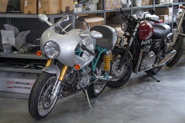 Az LSL nem új fiú a szakmában, bő harminc éve gyártanak kiegészítőket motorokhoz – kormányokat, lábtartókat, fékkarokat, bukógombát és hasonlókat, illetve amióta fellángolt a retró láz, vagyis úgy 2005 óta, már café raceresítéshez és scrambler átépítéshez is kínálnak kismillió tartozékot, sárvédőktől az ülésig mindent. Sokkal érdekesebb azonban, hogy időről időre készítenek projekt motorokat is. A központban kialakított, irigylésre méltóan felszerelt műhelyben egyaránt reszelgetnek régi és vadonatúj gépeket, ott rakták össze például azt a Triumph Scramblert, amivel az LSL-főnök három barátjával átvágott a Pireneusok eldugott ösvényein.