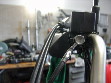 Jó esetben a fékcsövet áruló kereskedőnél van egy tisztességes adatbázis rengeteg járművel, amiből kinézi, hogy milyen csatlakozók és hosszúságú csövek kellenek, így nem is kell ott lennie a motornak. Az utóbbit ugyan lehet méregetni és bediktálni telefonon, az előbbi viszont simán lehet szopó, tekintve, hogy több mint hetvenféle csatlakozó létezik – az X-Bike-ban mutattak is párat, amik között ránézésre nem igazán volt különbség. Ők egyébként az angol Goodridge hazai forgalmazói, és elég sok fékcsövet építettek már, komoly tapasztalatuk van a témában.