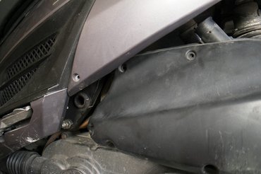 Az olajcserét viszont nem akartam másra bízni. Nem bizalmatlanság, vagy spórolás miatt – biztos vagyok benne, hogy a munkadíj összemérhető annak a hajtóműolajnak az árával, ami a nyakamon maradt a végén. Egyszerűen én akartam csinálni. Az autóimban nem én cserélgetem az olajat, mert ez aknával/emelővel annyival egyszerűbb, hogy nem szívatom magamat. A robogó más, viszonylag minden porcikája jól hozzáférhető. Legalábbis az elején még így gondoltam – aztán a légszűrőház kicsit árnyalta a véleményemet.