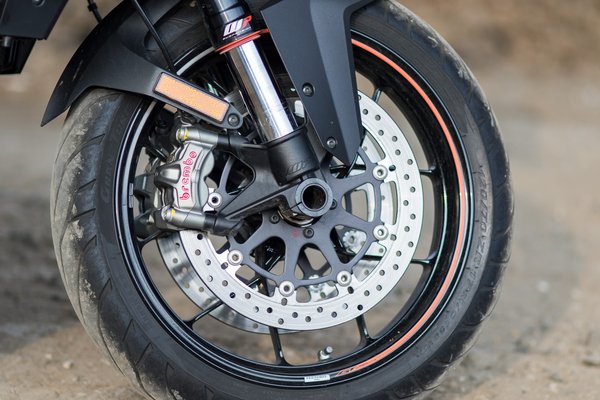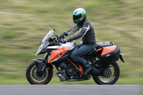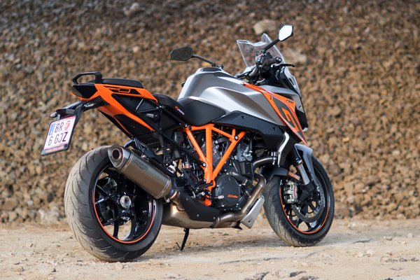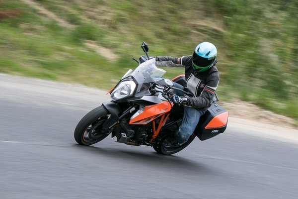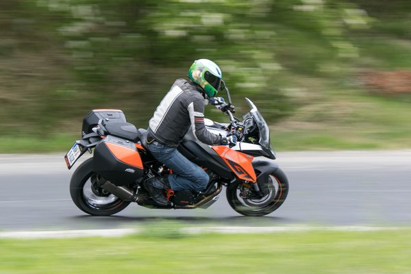Amikor viszont jó a Super Duke GT, akkor piszkosul jó. A vázgeometria zseniális, a széles gumi ellenére sem tohonya, sebességtől függetlenül nagyon szépen és ügyesen irányítható, minimális erőbefektetés sem szükséges a manőverekhez. A félaktív futómű az elmúlt évek legjobb fejlesztése, a csillapítást folyamatosan az aktuális viszonyokhoz igazítja, mintha előre olvasná az utat. Emellett három alapbeállítást ismer (comfort, street, sport), illetve álló helyzetben gombnyomással állíthatjuk négy fokozatban a rugóelőfeszítést az utas és a csomagok függvényében.