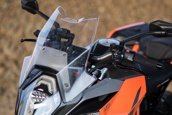 A gran turismoság jegyében 23 literre növelték a tankot, szerintem ormótlan lett tőle, cserébe a lábakról tökéletesen ledobja a menetszelet. A szélvédőt szerencsére nem vitték túlzásba, a felső testről leveszi a szelet, a sisakra még nem nyomja a légörvényeket, a karokat pedig szabadon tépi a szél. Menet közben is állítható két mozdulattal, 130-ig nem is különösebben nagy mutatvány.
