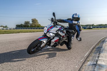 Pedig a 675-ös Street Triple R-t az Isten is ide teremtette. Hogy ne a lovamat dicsérjem, idéznék tapasztalt kollégám tesztjéből. A mondat egy spanyol gumiteszten hangzott el, ahol nemzetközi gyorscsávók kergették egymást mindenféle motorokkal: