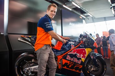 Az eseményen egyébként mindenki jelen volt, aki számít: Carmelo Ezpeleta, a Dorna vezetője, Stefan Pierer, KTM vezérigazgatója , Sebastian Risse, a KTM Onroad versenyrészlegének vezetője, és a projekt technikai atyja, Mike Leitner, a KTM Onroad részlegének elnökhelyettese, aki egyébként 2014 év végéig Dani Pedrosa csapatának technikai vezetője volt a Repsol Hondánál. De ott volt még Pit Beirer, a KTM versenyrészlegének igazgatója, és Mika Kallio tesztversenyző. A moderátor szerepét pedig Alex Hoffmannra osztották.